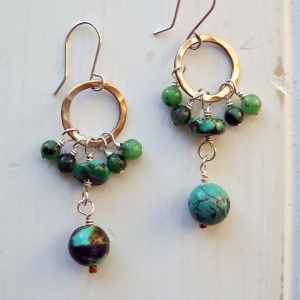 SOLD Small Sterling Hoops with Turquoise & Labradorite
